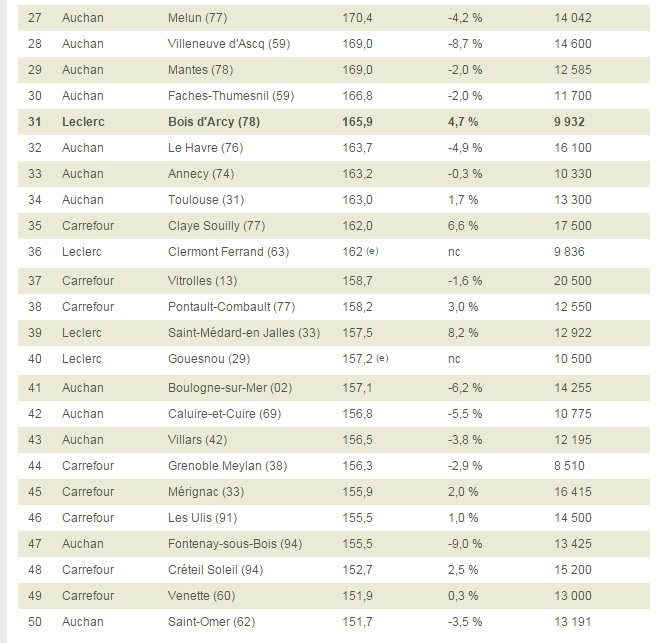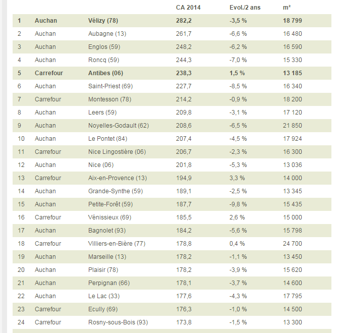 Alors mes chers lecteurs, ce qui arrive va être dantesque. Je vous invite donc à faire monter le chiffre d’affaires des hypermarchés et en particulier du rayon boîtes de conserve… D’ailleurs, cette liste des supermarchés et l’évolution de leur chiffre d’affaires est parfaitement cohérente avec les différentes dynamiques économiques régionales…